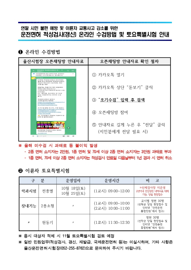 ‒ | 운전면허 적성검사(갱신) 온라인 수검방법 및 토요특별시험 안내 |