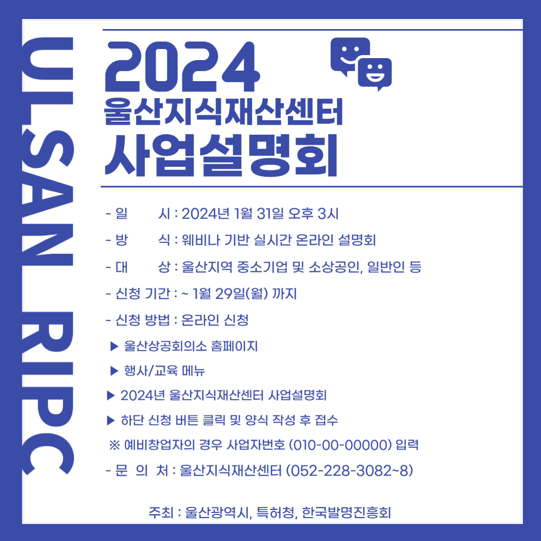 | ‒ | 2024년 울산지식재산센터 온라인 사업설명회 |